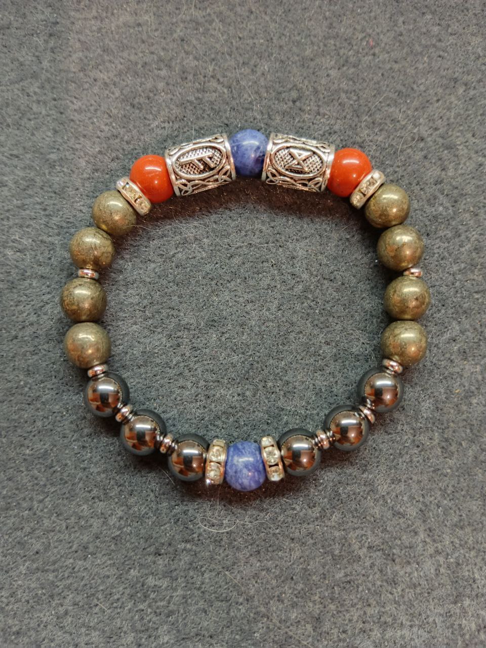 Руны ансуз+дагаз • Яшма (Красная) • Пирит • Гематит • Содалит